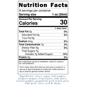 Add a bold kick to your beverages with our Roasted Peppers & Citrus Sir-uhp by The Craftsman Beverage Co.! Crafted with fresh citrus peels from limes, lemons, and grapefruits, this sir-uhp delivers a bright, fresh flavor that perfectly complements the heat of roasted jalapeños, bell peppers, poblanos, and serranos. Raw cane sugar enhances the sweetness, while thyme adds an extra layer of complexity to the mix.
